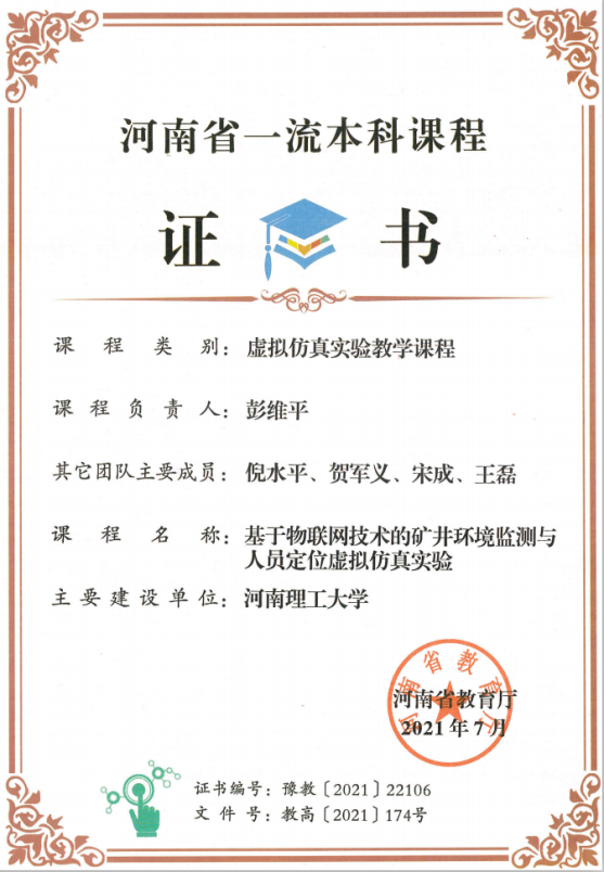 课程名称:基于物联网技术的矿井环境监测与人员定位虚拟仿真实验