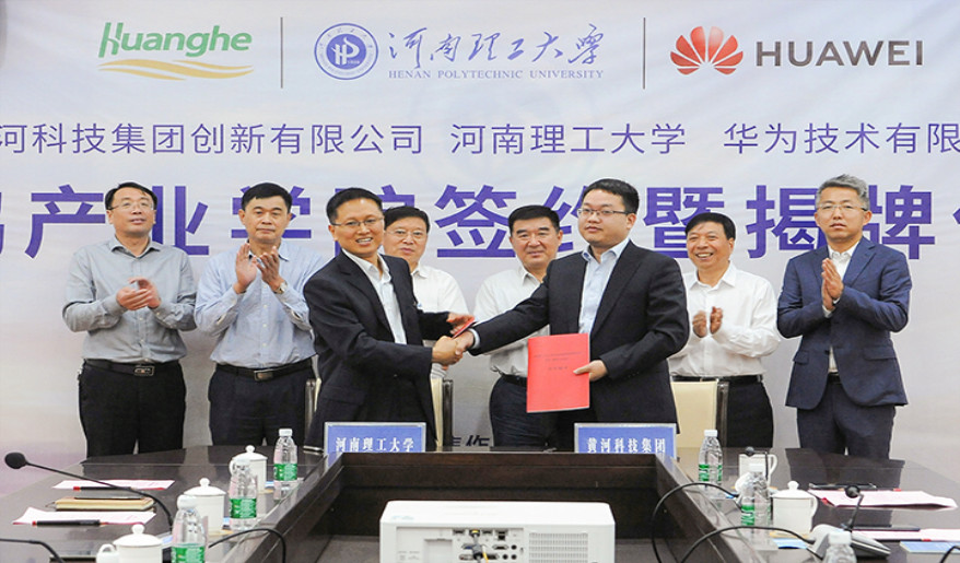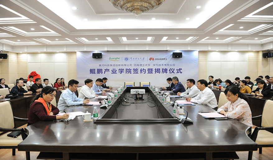 9月29日上午,河南理工大学鲲鹏产业学院签约暨揭牌仪式在我校力行楼一楼会议室举行。河南省教育厅副厅长刁玉华、河南投资集团党委副书记佀洪恩、华为河南政企教育医疗业务部总经理张轩、河南省教育厅高教处副处长张小茜、黄河科技集团创新有限公司董事长冯武、校长杨小林出席,仪式由副校长赵俊伟主持。