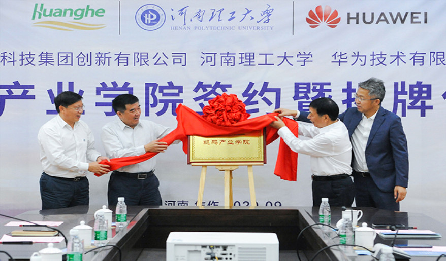 刁玉华、杨小林、佀洪恩、张轩共同为河南理工大学鲲鹏产业创新学院揭牌。