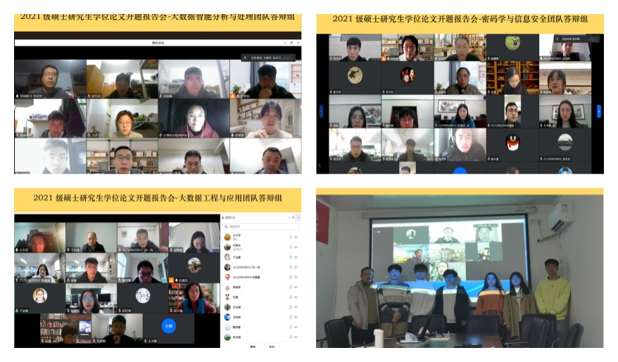 开题报告会以学术研究团队为单位,共设置15个答辩小组,以线上线下相结合的方式组织开展。为确保开题答辩质量,学院安排督导组专家进入会议开展线上督导,并从报告会组织是否规范、学生答辩汇报是否充分、专家是否提出实质性意见、审议是否严格等方面进行督导检查。开题报告会上,各小组专家针对答辩学生的研究思路、技术方法、创新点等方面进行了质询,指出其选题中存在的问题,并对如何修改和完善开题报告提出意见和建议。最终,经过各答辩小组审议,122名硕士研究生通过开题答辩。