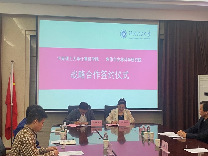 9月27日,yl6809永利官网与焦作市农林科学研究院技术合作协议签约仪式在学院217会议室举行。河南理工大学yl6809永利官网院长孙君顶、副院长冯文峰、副院长王磊等,焦作市农林科学研究院党委书记、院长徐红霞及班子成员出席签约仪式。