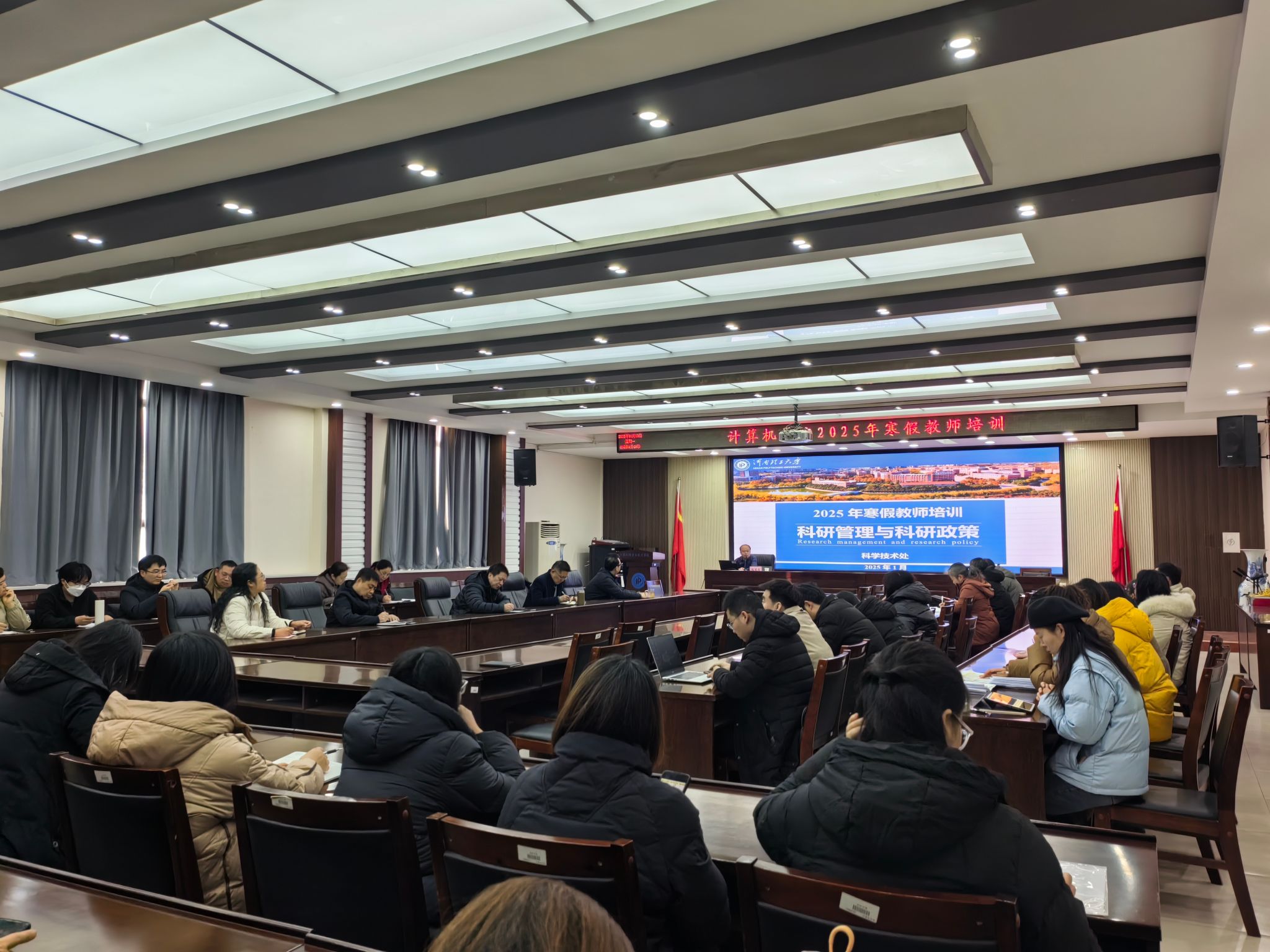 1月13日上午,科技处副处长张宝庆作题为《科研管理与科研政策》的报告,他从科技处机构设置、2024年度学校科研情况、每年科研工作安排、部分科研政策解读、成果登记与奖励申报、国家自然科学基金“十四五”优先支持发展领域以及近年学校国家自然科学基金情况等七个方面和与会教师进行了分享。下午,研究生院副院长郭海儒作题为《学习贯彻《学位法》,推进研究生教育高质量发展》的报告,他介绍了《学位法》的基本内容、分析了其重要意义、重点阐述了分类发展、质量保障以及救济机制等内容,对于教师依法培养研究生,推动学位点高质量发展具有明确的指导意义。