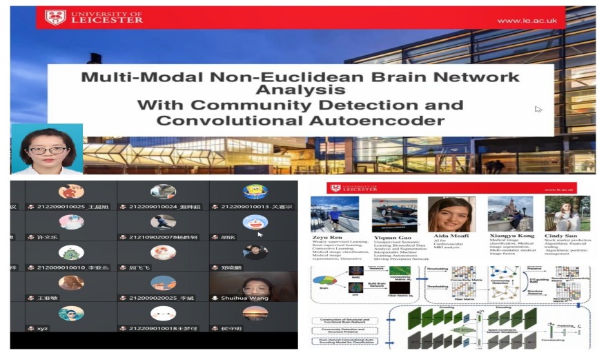 1212日下午,英国莱斯特大学副教授王水花应邀参加我院“第三届研究生学术文化节”,为我院、软件学院师生线上作了题为《基于社区发现和卷积自编码器的多模态非欧氏脑网络分析》的学术报告,软件学院唐朝生副教授主持报告会,部分教师和研究生参加了报告会。