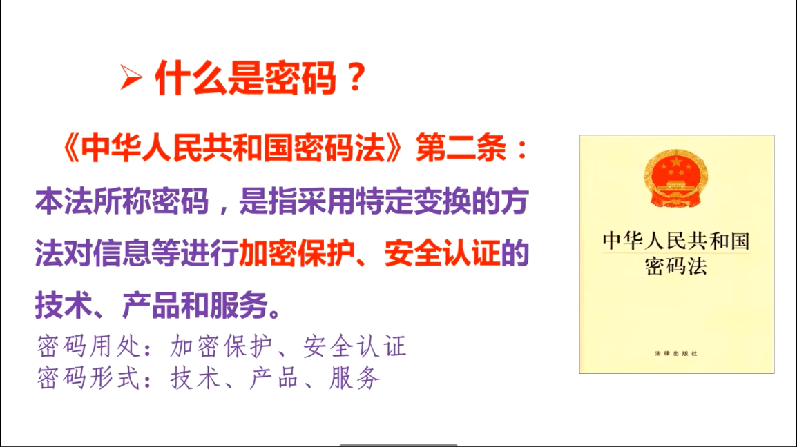 报告会上,李子臣教授首先通过藏头诗、隐写术等例子为大家讲解了信息隐藏的概念、模型和应用。其次,通过阴符、阴书、手势、羊皮条等例子讲解了代换密码、转换密码,介绍了《中华人民共和国密码法》中给出的密码的定义、方法以及密码学原理在信息传递中的应用。最后,给大家普及了我国商用密码的分类、产品以及密码的4个属性等相关知识,强调了密码技术在国家信息安全中的重要性。
