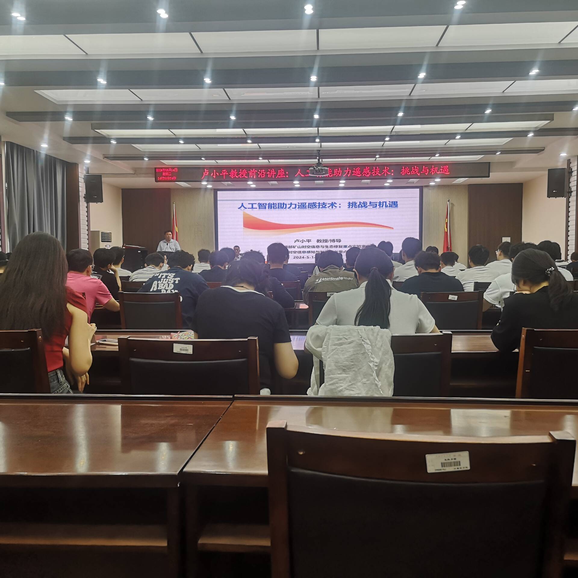 5月14日下午,我院邀请测绘学院教授卢小平在201会议室作题为“人工智能助力遥感技术:挑战与机遇”学术前沿讲座。讲座由学院物联网系主任贺军义主持,2023级电子信息专业硕士研究生近100人参加。
