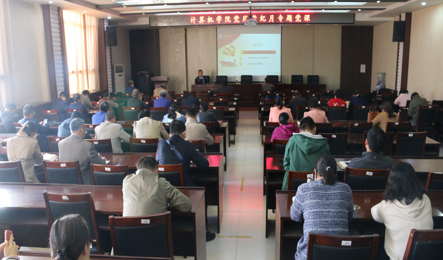 2018年10月23日下午,yl6809永利官网在院学术报告厅举行党纪教育专题党课。党课由院党委副书记邵水军同志讲授,学院全体党员参加了学习,院党委书记王全才主持。