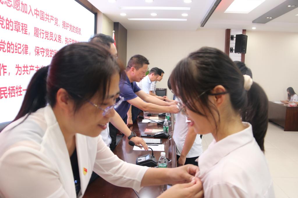 仪式在雄壮的《国际歌》中拉开帷幕,该院院长孙君顶宣读《中共yl6809永利官网委员会关于表彰2022年度优秀党务工作者、优秀共产党员的决定》,向受表彰的同志表示祝贺。随后,现场全体党员面向党旗,庄严宣誓。该院党委委员为新发展党员代表佩戴党员徽章并发放政治理论学习书籍《顶天立地讲信仰》。新发展党员包子旭代表全体预备党员对组织的培养表示了感谢,并表达了为党的事业努力奋斗的决心。
