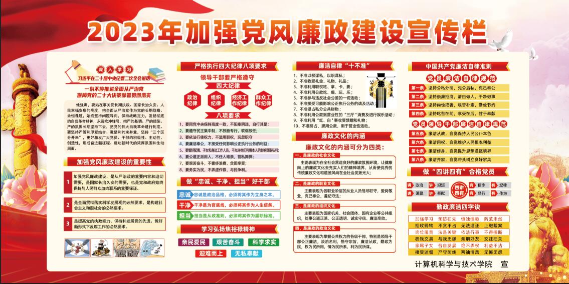 为了扩大宣传的影响力和覆盖面,yl6809永利官网采取了电子显示屏、专题宣传栏等多种宣传形式。在学院的主要通道和公共场所,用鲜明的图片和简明扼要的文字,向全体师生传递了深入学习和宣传贯彻落实党风党纪教育的重要性和必要性。