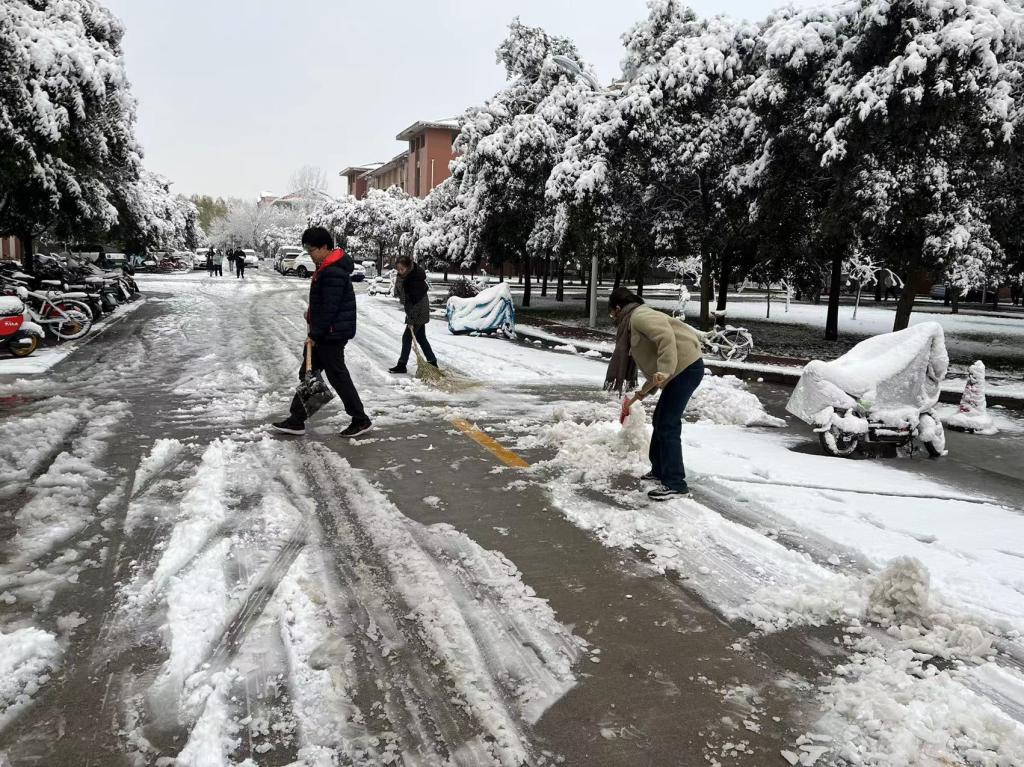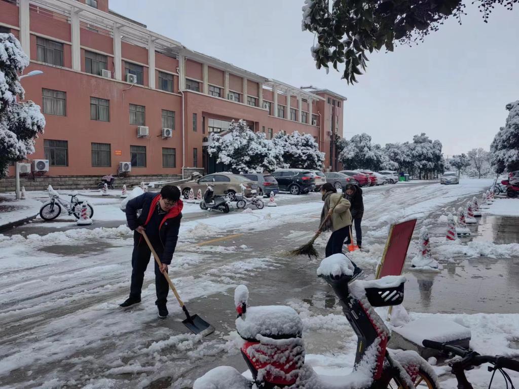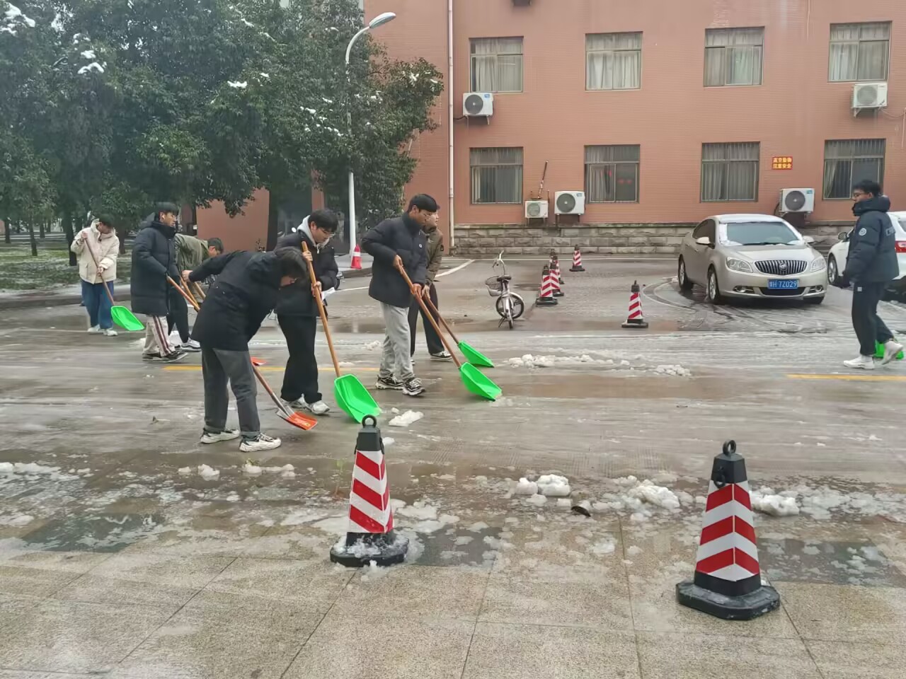 为了保障师生出行安全,近日,yl6809永利官网师生志愿服务队在做好自身防护的前提下,积极开展扫雪除冰志愿服务行动。学院党政领导、教工党员及多名党外人士参与了此次志愿活动。