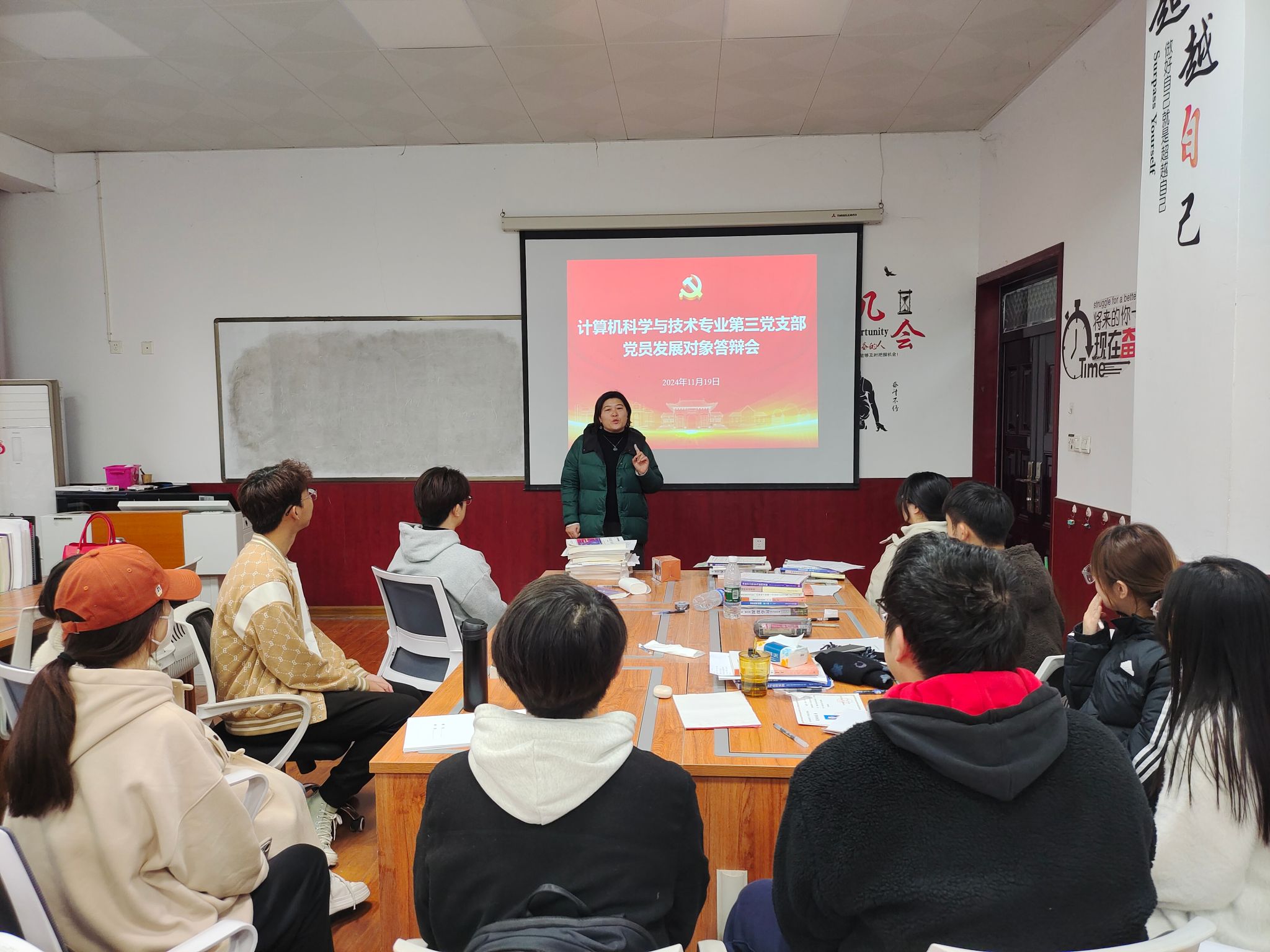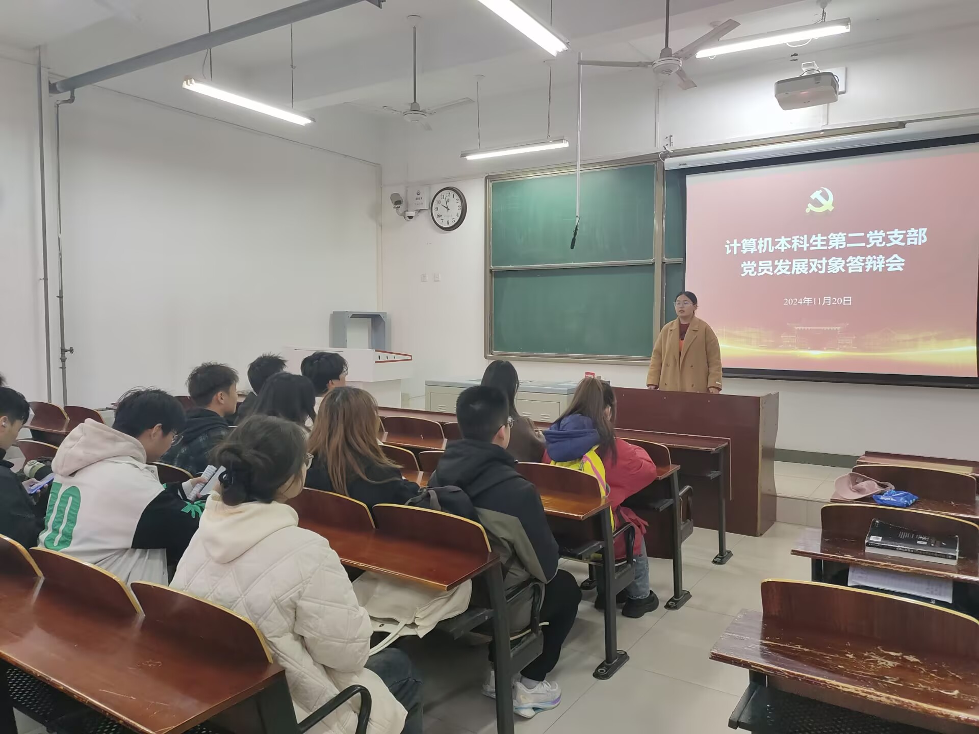汇报环节中,每一位发展对象依次登台,借助精心准备的PPT,全面展示了自确定为积极分子以来,在理论学习、日常生活、学业成绩、科研竞赛、社团活动及志愿服务等多个维度所取得的进步。他们言辞恳切,表达了矢志不渝向党组织靠拢的坚定信念。答辩组针对每位发展对象的汇报内容,围绕党的基本知识、基本理论、时政热点、党史知识等方面进行了深入的提问和交流。在综合考量答辩表现后,答辩组对发展对象在培养期间取得成绩和进步给予了肯定,同时也中肯地指出了他们目前存在的问题与不足。老师们勉励各位发展对象要始终坚守初心,充分发挥先锋模范作用,以党员的标准严格要求自己,不断追求卓越。