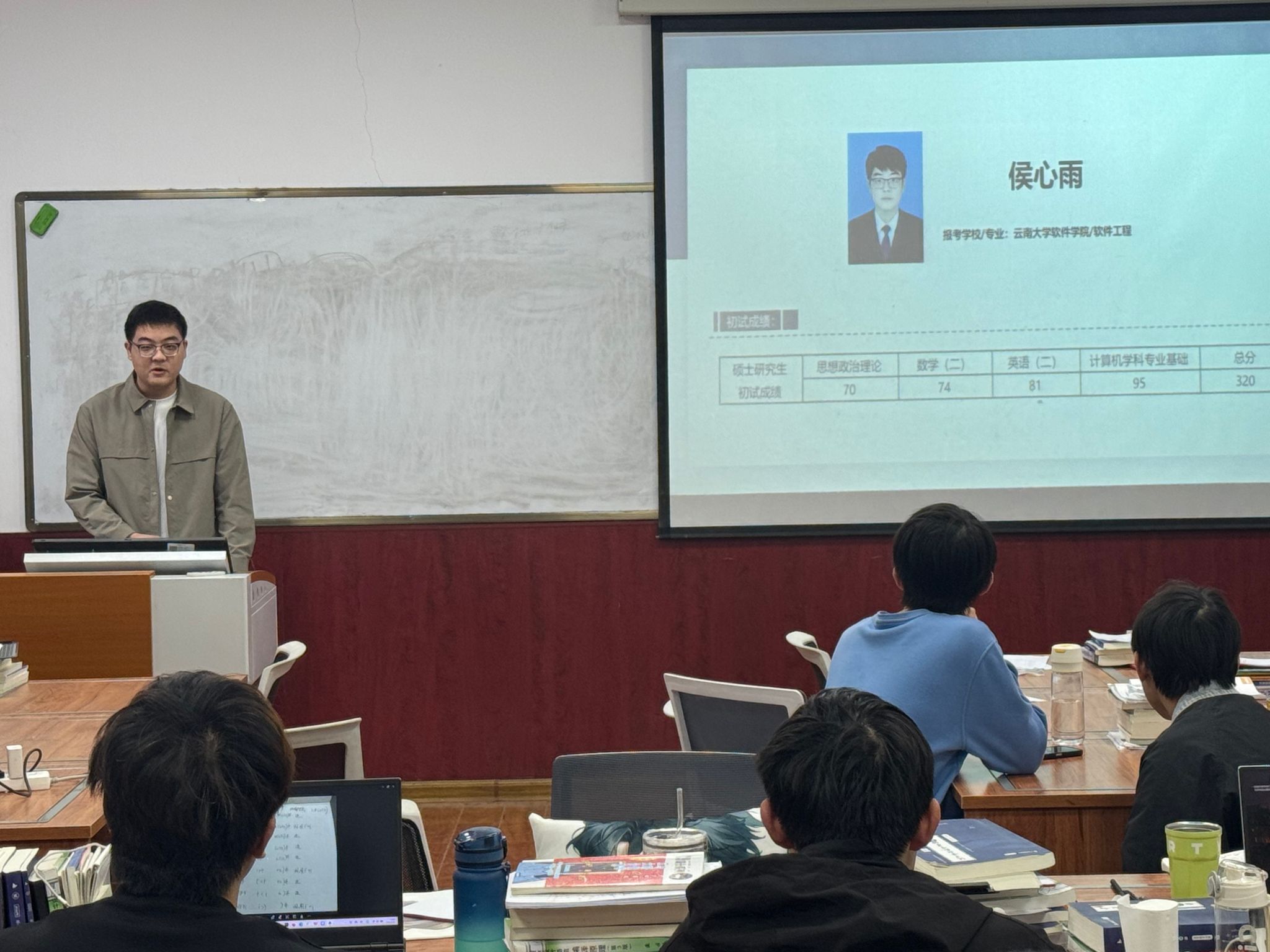 本次交流会邀请21级实验班优秀学生代表侯心雨担任主讲。他结合自身备考经历,从院校选择、复习规划、时间管理、心态调整等方面进行系统讲解,并推荐了高效学习工具和优质网络资源。在互动环节,同学们踊跃提问,围绕专业课复习策略、科研竞赛与考研平衡等问题展开深入交流,现场气氛热烈。