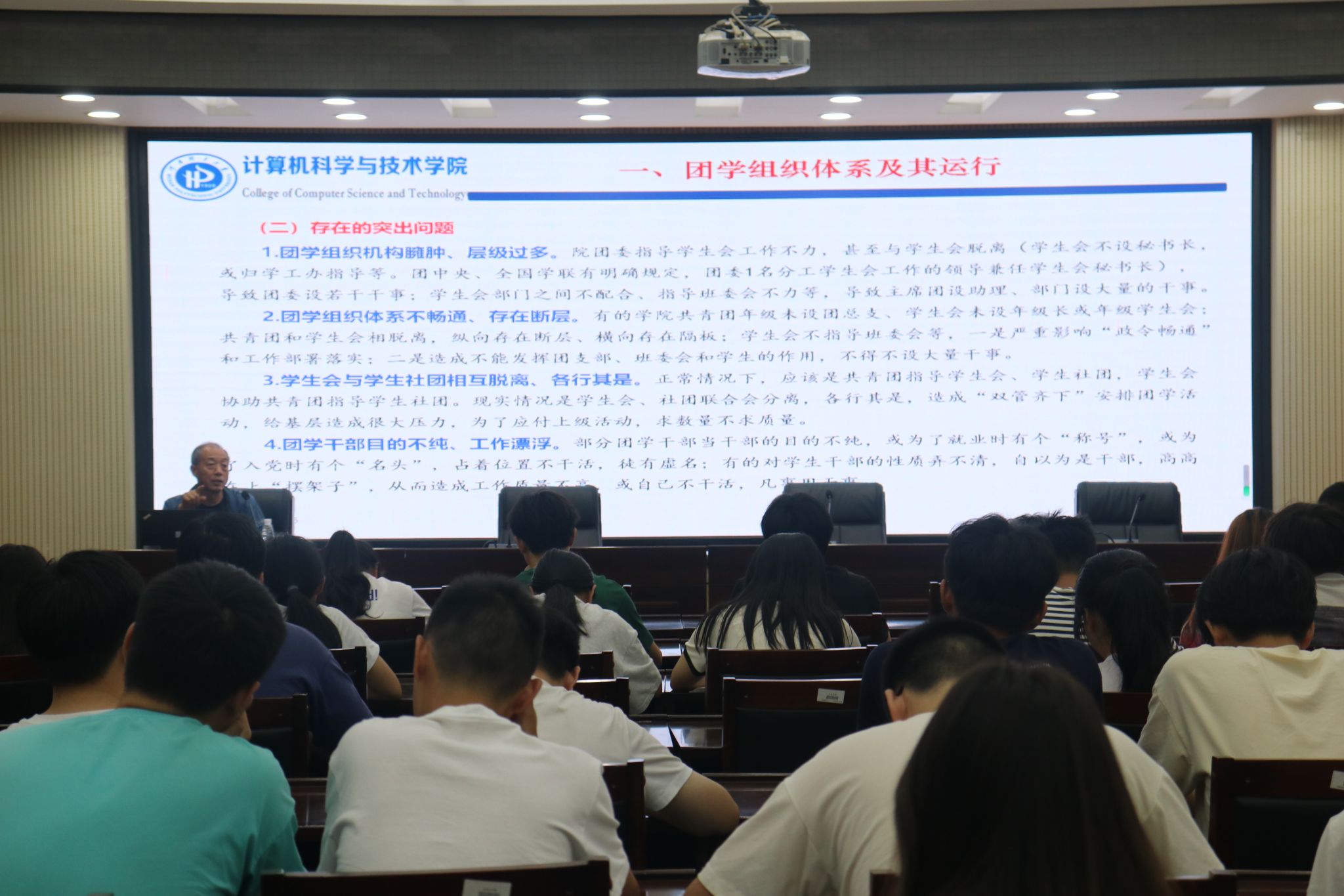 为推进团学组织体系改革,提升学生干部综合素质,发挥老干部老党员在学生思想政治教育工作中的重要作用,5月25日,yl6809永利官网团委在学院报告厅举办学生骨干培训。学院团委、研究生会、学生会、班长联席会、青年志愿者协会等院级学生骨干的80余名同学参加培训,校关工委秘书处常务副秘书长朱天明主讲,学院团委书记岳磊主持。