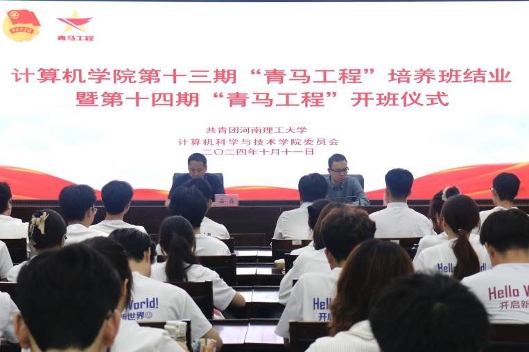 在庄严的国歌中,仪式拉开帷幕。岳磊首先概述了“青马工程”培养班第十三期的培养情况及第十四期学员选拔情况。阎俊豪介绍了“青马工程”建设目标、具体内容以及各级“青马工程”培养班特别是学院“青马工程”培养班近年来的建设培养成果,并对大家提出三点希望,一是要认真学习马克思主义理论最新成果,做到学马、懂马、信马、用马;二是要通过理论学习更加坚定地爱国、爱党、爱校、爱院;三是要在“学思践悟”马克思主义理论的过程中实现个体的成人、成长、成才、成功。 会上,与会教师共同为第十三期“青马工程”培养班学员代表颁发结业证书,第十三期学员代表任烜赫、第十四期学员代表李竞一先后发言。开班结束后,yl6809永利官网关工委常务副主任朱天明以《增强宗旨意识,当好学生干部》为主题,为第十四期“青马工程”培养班学员讲授了开班第一课。