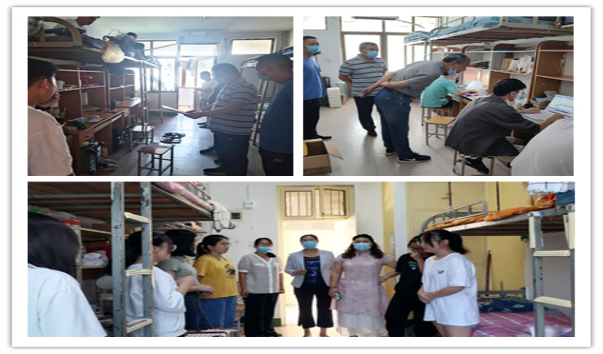 2022912日,我院党委书记朱天明、党委副书记邵水军、副院长于金霞在学院相关部门负责人及各年级辅导员的陪同下深入学生宿舍走访看望新生,了解学生开学返校、学生宿舍疫情防控等情况。