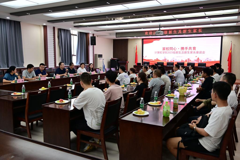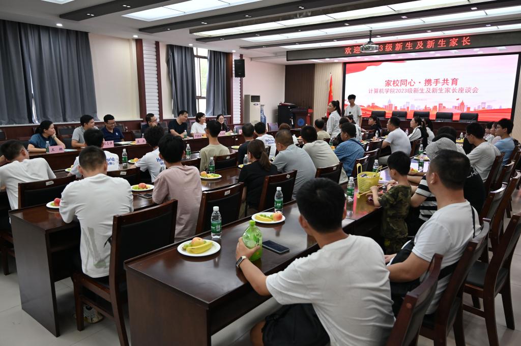 座谈会开始前,参会家长观看了学校宣传片。座谈会上,阎俊豪首先对新生家长表示欢迎和问候,随后介绍了学校和学院的基本情况和特色优势,强调了高中和大学的区别,希望家校共同关注学生日常安全、新环境融入和适应情况、致力学生成长成才,鼓励同学们学会认识自己、学会与他人相处、树立高远志向,做“有理想、有追求,有担当、有作为,做有品质、有修养”的大学生。随后,芦碧波、晁浩分别介绍了计算机系和物联网系的专业情况、培养方案和校企合作、学科竞赛等情况。王娜介绍了教学管理和保研情况,段志强介绍了党员发展流程和条件,汪志英介绍了学生工作内容和入学教育安排,段晓玮介绍了新生入校工作和家长应关注的具体事宜。最后,家长和新生就关心的入党,保研、专业学习、就业前景等事宜进行了充分交流。