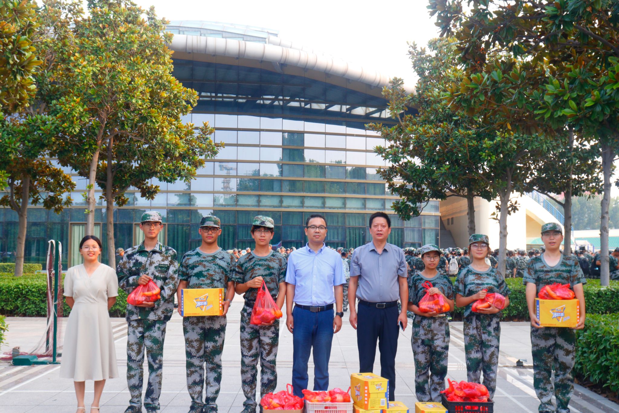 中秋佳节来临之际,为表达对军训新生的关怀与鼓励,鼓励新生上好入学第一课,9月14日下午,yl6809永利官网领导许辉、阎俊豪在新生辅导员刘丽的陪同下到军训场地看望慰问300余名2024级新生。
