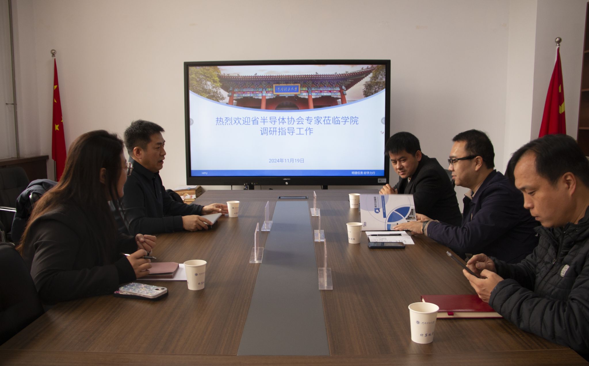 为提升人才培养质量,加强行业协同育人,11月19日上午,yl6809永利官网邀请河南省半导体协会专家李晴、郝志卿莅临学院就行业学校联动合作进行交流。学院党委副书记阎俊豪、计算机系芦碧波教授,物联网系倪水平教授参加会议。